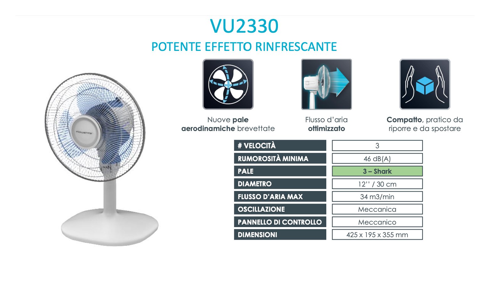 Ventilatore Tavolo ESSENTIAL + Vu2330 Bianco 4100006804 35W 30cm 3 pale