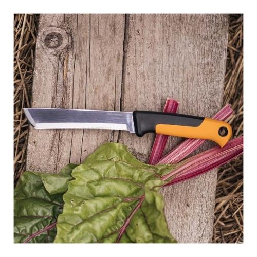 Perfetto per tagliare e raccogliere frutta e verdura con steli più duri, il coltello per la raccolta x-series™ k82 di fiskars è resistente ed esegue tagli puliti e precisi. La lama rettificata in acciaio inox ha sia la testa obliqua per poter effettuare tagli spingendo contro gli steli, che una parte seghettata per le parti più fibrose. Il lungo codolo aumenta la resistenza mentre l’impugnatura ergonomica rende la presa comoda e sicura. Fornito di fodero di plastica rigida e linguetta forata, facile da riporre e trasportare.