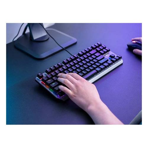 Compatta tastiera gaming TKL, con switch meccanici e illuminazione onda arcobaleno.