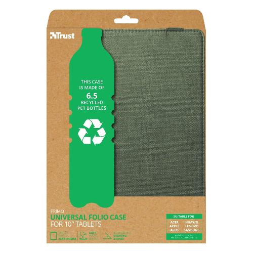 Custodia folio universale per tablet fino a 10 pollici, realizzato con materiali PET riciclati.