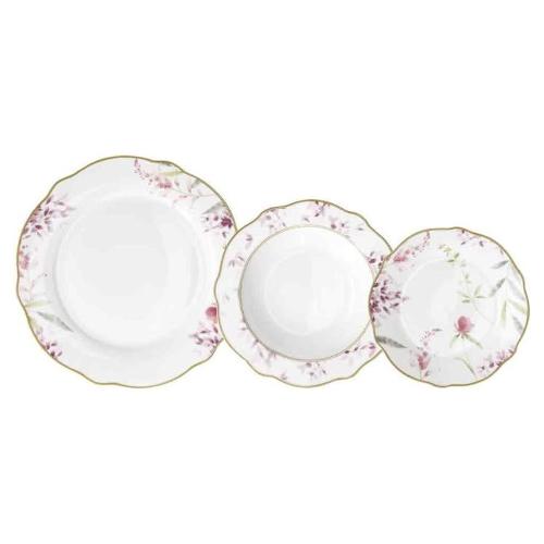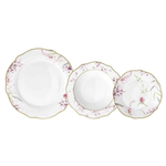 Del marchio Tognana questo servizio si presenta classico e allo stesso tempo contemporaneo, grazie alla sua caratteristica forma cappettata rivisitata in chiave moderna, che lo rende ideale per qualsiasi contesto. In porcellana bianca con decori floreali delicati e il bordino color verde, questo servizio è perfetto per le tue mise en place durante i mesi autunnali e primaverili. Adatto al lavaggio in lavastoviglie e all'uso in microonde. 6 piatti piani da 27 cm, 6 piatti fondi da 21,5 cm, 6 piatti dessert da 19 cm