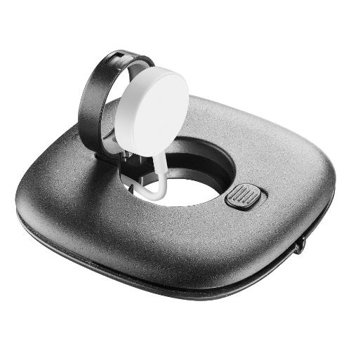 DOCK è la base di appoggio studiata per semplificare il momento della carica di Apple Watch. Dotata di un pratico vano interno con funzione di alloggiamento cavo e di un anello reclinabile, consente il caricamento dell'Apple Watch sia in verticale che in orizzontale. Ideale come supporto quando si utilizza la modalità sveglia.