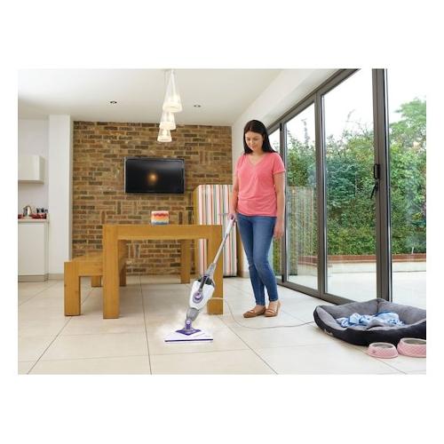 La lavapavimenti a vapore 2in1 BLACK+DECKER con testa triangolare estraibile e guanto che genera vapore SteaMitt ti consente di mantenere pulita la tua casa senza l'uso di prodotti chimici: basta aggiungere acqua del rubinetto.