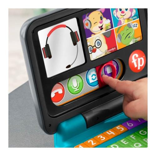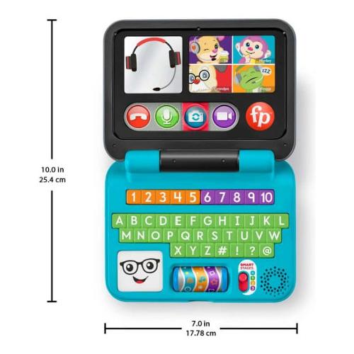 Ora i bambini possono giocare e imparare direttamente a casa propria (e ovunque si trovino) con il giocattolo elettronico il mio primo laptop™ ridi e impara® da fisher-price®. Tra video chat immaginarie con cagnolino e i suoi amici e la funzione 'audio' da attivare, i bambini possono premere i pulsanti della tastiera o far girare il rullo musicale per attivare divertenti luci colorate e oltre 55 canzoncine, suoni e frasi a tema con l'alfabeto, i colori, i numeri e tanto altro. Inoltre, con i 3 livelli della tecnologia smart stages®, l'apprendimento varia man mano che il bambino cresce.