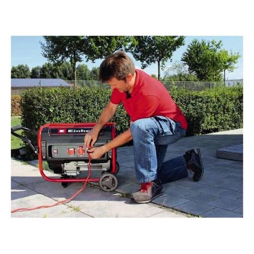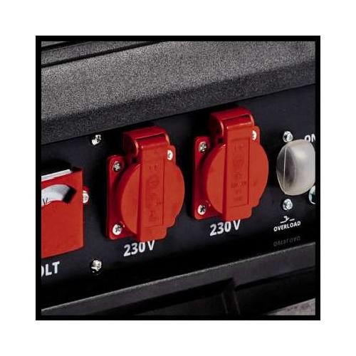 Il generatore di corrente tc-pg 35 / e5 a benzina di einhell genera una potenza continua di 2.600 w e un max. di potenza di 3.100 w grazie al suo potente, robusto motore a 4 tempi. Grazie alla conformità con le normative sulle emissioni 5, il motore a 4 tempi raffreddato ad aria è a basse emissioni durante il funzionamento. Per il trasferimento di elettricità ha due prese da 230 v incluso un voltmetro che mostra la tensione. La funzione avr (sistema di controllo automatico della tensione) garantisce una potenza di uscita stabile. Ci sono due grandi ruote e una maniglia a cerniera per un facile trasporto. L'ampio serbatoio da 15 litri ha un pratico indicatore del livello di riempimento per il funzionamento continuo. Un interruttore di sovraccarico e un basso livello d'olio assicurano un uso duraturo. Il generatore è avviato da un cavo facile da usare.