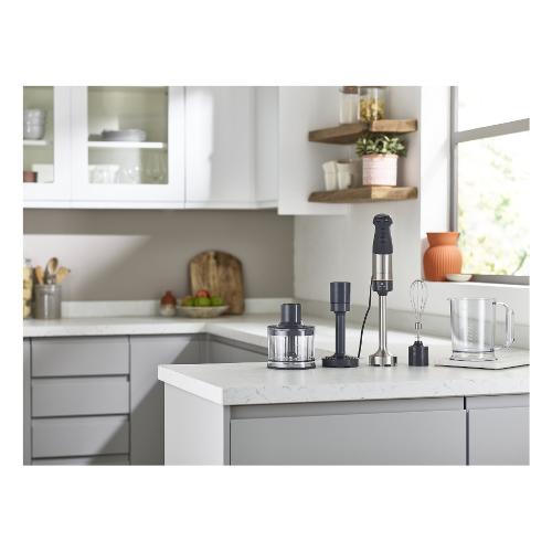 Questo frullatore a immersione premium offre prestazioni di miscelazione superiori. Triblade XL, possiede tutti gli accessori necessari per essere creativi in cucina. Include tritatutto da 500 ml, purea e schiacciapatate, frusta in metallo e becher facile da versare.