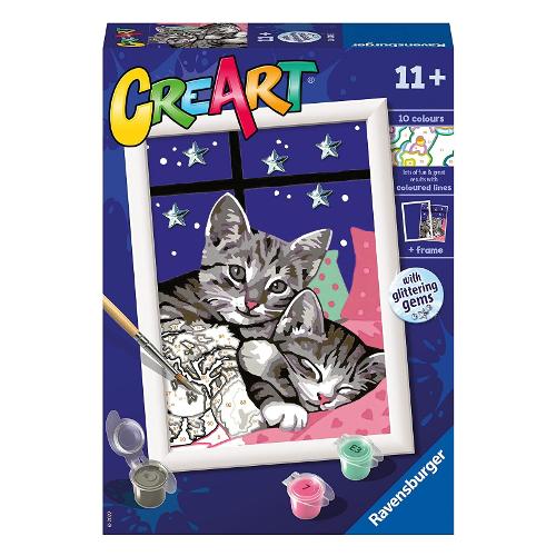 Per i bambini dipingere non è mai stato così facile e soddisfacente. Creart è un gioco creativo per dipingere attraverso una tavola prestampata, i bambini possono seguire i numeri e i bordi colorati per riempire gli spazi con i colori corrispondenti e realizzare la loro opera d’arte. I colori a base d'acqua sono pronti per l'uso e non necessitano alcun solvente. I barattoli di colori sono richiudibili singolarmente per evitare che si secchino. Per facilitare l'attività, viene fornito una tavolozza di cartone dove inserire i barattolini per evitare che si rovescino. Ogni confezione contiene tutto il necessario per dipingere un quadro e una cornice per poter appendere il proprio lavoro una volta terminato il lavoro. Avvertenza. Da usare esclusivamente sotto la supervisione di un adulto