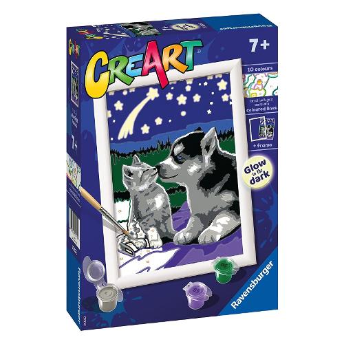 Per i bambini dipingere non è mai stato così facile e soddisfacente. CreArt è un gioco creativo per dipingere attraverso una tavola prestampata, i bambini possono seguire i numeri e i bordi colorati per riempire gli spazi con i colori corrispondenti e realizzare la loro opera d’arte. I colori a base d'acqua sono pronti per l'uso e non necessitano alcun solvente. I barattoli di colori sono richiudibili singolarmente per evitare che si secchino. Per facilitare l'attività, viene fornito una tavolozza di cartone dove inserire i barattolini per evitare che si rovescino. Ogni confezione contiene tutto il necessario per dipingere.