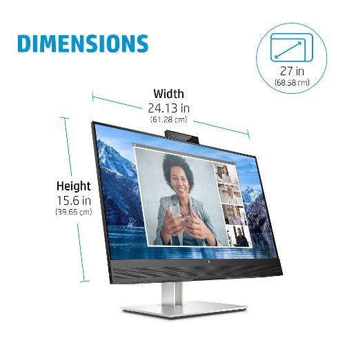 Accedi alla conferenza e connettiti con facilità con il monitor per conferenze USB-C HP E27m G4 certificato Zoom dotato di webcam integrata da 5 MP, inclinazione regolabile, altoparlanti frontali e doppio microfono.