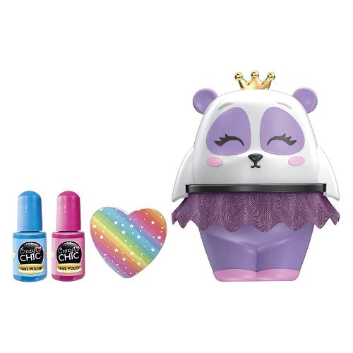 Una fantastica trousse a forma di panda ballerina che nasconde in sé il segreto per una nail art super chic! Tutto l'occorrente per realizzare una manicure perfetta: 2 smalti colorati e una lima! La gonna della ballerina è in tessuto, per una trousse dal tocco glamour! Le bambine potranno divertirsi a realizzare una nail art secondo il proprio stile, sviluppando creatività e manualità. Una trousse da collezionare per avere unghie perfette in ogni occasione!
