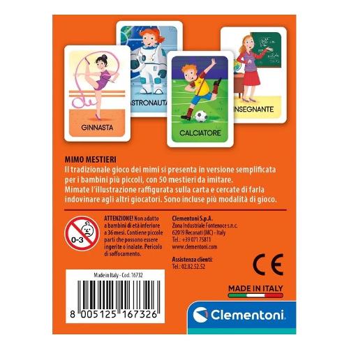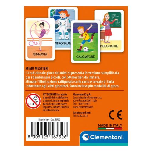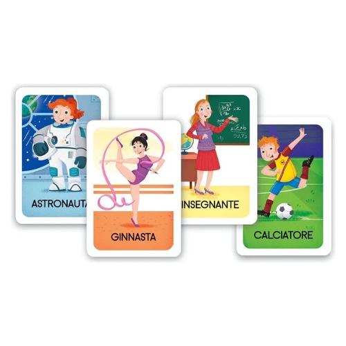 Conosci davvero tutti i mestieri che esistono? E sapresti imitarli? Un gioco coinvolgente che farà divertire grandi e piccoli con sfide a colpi di mimo. Basta pescare una carta e tentare di imitare il mestiere raffigurato con lo scopo di farlo capire agli altri giocatori. Sono previste più modalità di gioco che permetteranno di sviluppare la capacità di imitazione e la memoria.