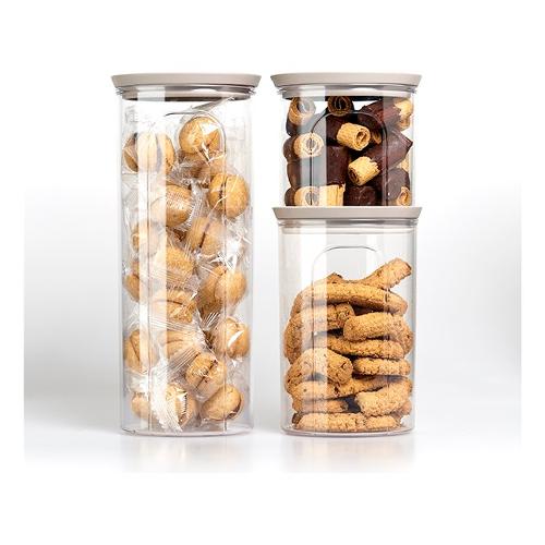 Barattolo in plastica trasparente, tondo, dotato di tappo con chiusura ermetica ideale per preservare la freschezza degli alimenti. La trasparenza del prodotto permette di controllare il contenuto all'interno e il design ricercato garantisce una presa sicura. Realizzato in materiali di alta qualità, bpa free, lavabile in lavastoviglie e sovrapponibile ad altri barattoli della stessa forma.