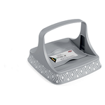 Portatovaglioli orizzontale in materiale plastico, pratico ed elegante. Decorato con delicati intarsi in tortora o palace blu è composto da fermatovaglioli e da una utile impugnatura che facilita lo spostamento. Idoneo al contatto alimentare