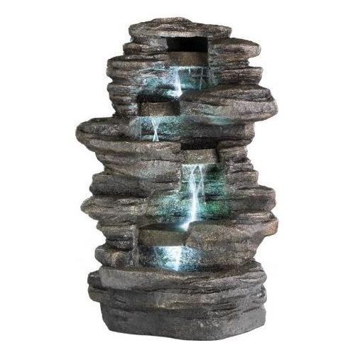 Fontana decorativa esterno con luce led Roccia (53x53x98cm) Pietra naturale 895758