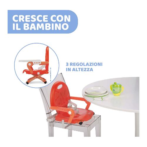 Il rialzo sedia comodo e facile da usare per le prime pappe del bambino. Sfoderabile per una pulizia completa e facilitata. Può essere regolato su 3 livell per adattarsi e seguire la crescita del bambino. Pieghevole e compatto per essere trasportato o riposto senza ingombrare.