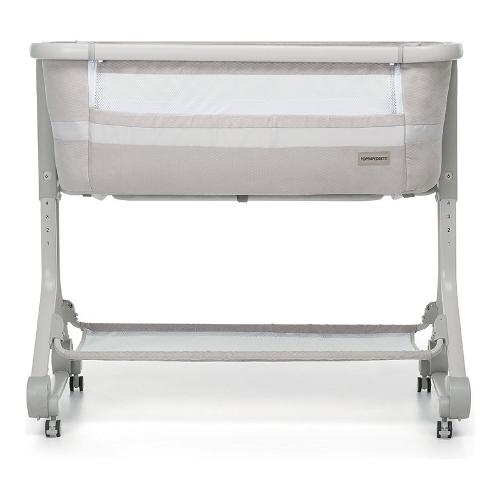 La culla ha un fianco apribile per consentire la modalità co-sleeping ed è regolabile in altezza in 6 posizioni indipendenti, adattabili anche per la funzione anti-reflusso. La struttura in alluminio è leggera e facile da spostare, grazie alle 4 ruote gommate e piroettanti con freno: ruotando le ruote di 180°, la culla si trasforma in modalità dondolo. La cura dei dettagli è massima per garantire il miglior comfort al neonato: la parte interna ha tessuto morbido al tatto e aerazione naturale per un miglior ricircolo d’aria. Ampio ripiano portaoggetti e materassino incluso.