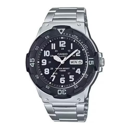 Orologio subacqueo dalle grandi dimensioni. Lunetta girevole. Impermeabile fino a 100 metri. Visualizzazione giorno e data. Cassa in acciaio inossidabile