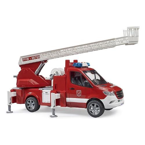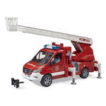 Le autopompe più piccole sono sempre più utilizzate per gli incendi difficili da combattere, per esempio nelle strade strette della città vecchia. In questo caso, lo sprinter si è dimostrato particolarmente efficace grazie alla sua enorme maneggevolezza. Bruder ha dotato questo camion dei vigili del fuoco di numerosi dettagli funzionali realistici. L'attenzione si concentra sulla scala girevole estensibile con gabbia di salvataggio e lo spruzzatore d'acqua funzionale con pompa a pistone visibilmente funzionante, serbatoio dell'acqua e gambe di supporto estensibili, vari contenitori per attrezzi, così come il nuovo modulo luci e suoni completano l'elevata qualità di gioco di questo veicolo.
