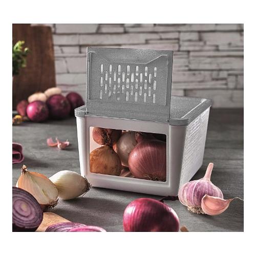 Contenitore per conservare cipolle, patate e verdure: garantisce un ambiente buio e ben ventilato, condizioni che assicurano la freschezza duratura delle verdure.