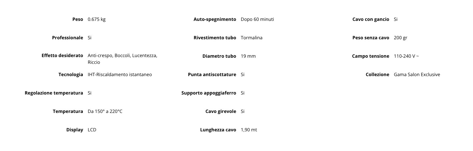 Ferro arricciacapelli per boccoli stretti dotato di IHT Technology per riscaldare il tubo istantaneamente ed in maniera uniforme. Temperatura regolabile. Con tecnologia Nano Silver per un trattamento antibatterico sul tubo di tormalina.