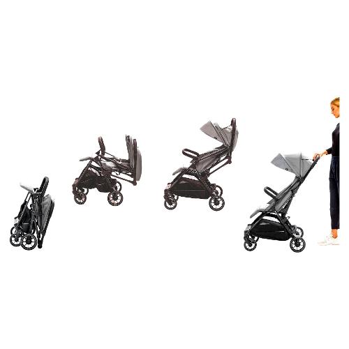 Now il passeggino che si chiude da solo con un nunico tocco; con seduta ampia e confortevole e pedana regolabile. Lo schienale regolabile consente al bambino una seduta corretta (reclinazione massima fino a 170°). Controllo della temperatura in tutte le Stagioni, grazie alle capottine estendibili e trattamento anti UV UPF50+ e ad accessori come Parapioggia Tessuti sfoderabili e lavabili; corrimano e impugnatura in similpelle, facilmente lavabili