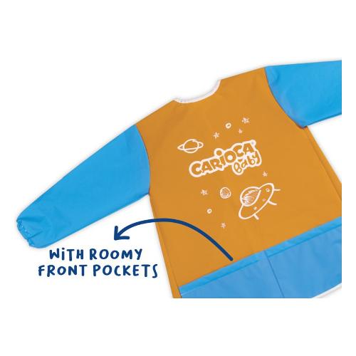 Dotato di maniche lunghe e tasche • Studiato per dare via libera alla creatività senza avere paura delle macchie • Si lava comodamente in lavatrice a 30°C • Chiusura al collo regolabile con velcro • Posto dedicato per scrivere il nome