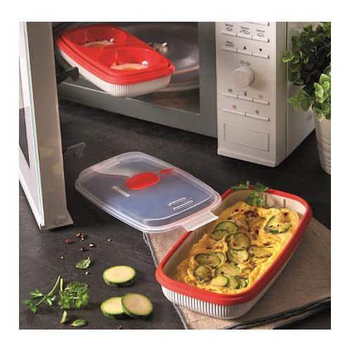 Il prodotto è studiato per garantire la distribuzione ottimale delle microonde, e una corretta circolazione del vapore durante la cottura.