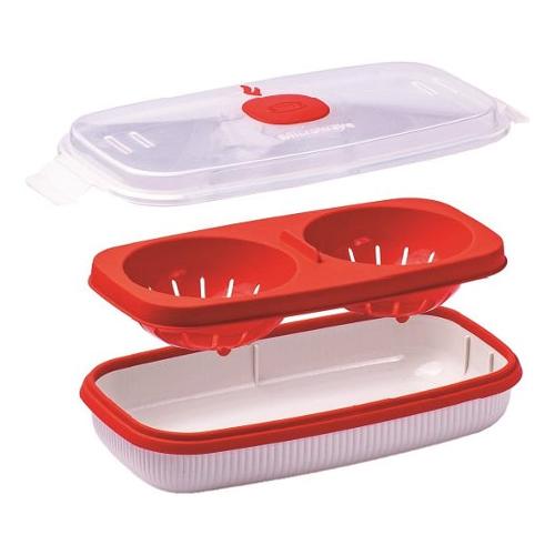 Grazie al vassoio intermedio, provvisto di due sedi semi-sferiche, si possono cucinare uova in camicia e all’occhio di bue.