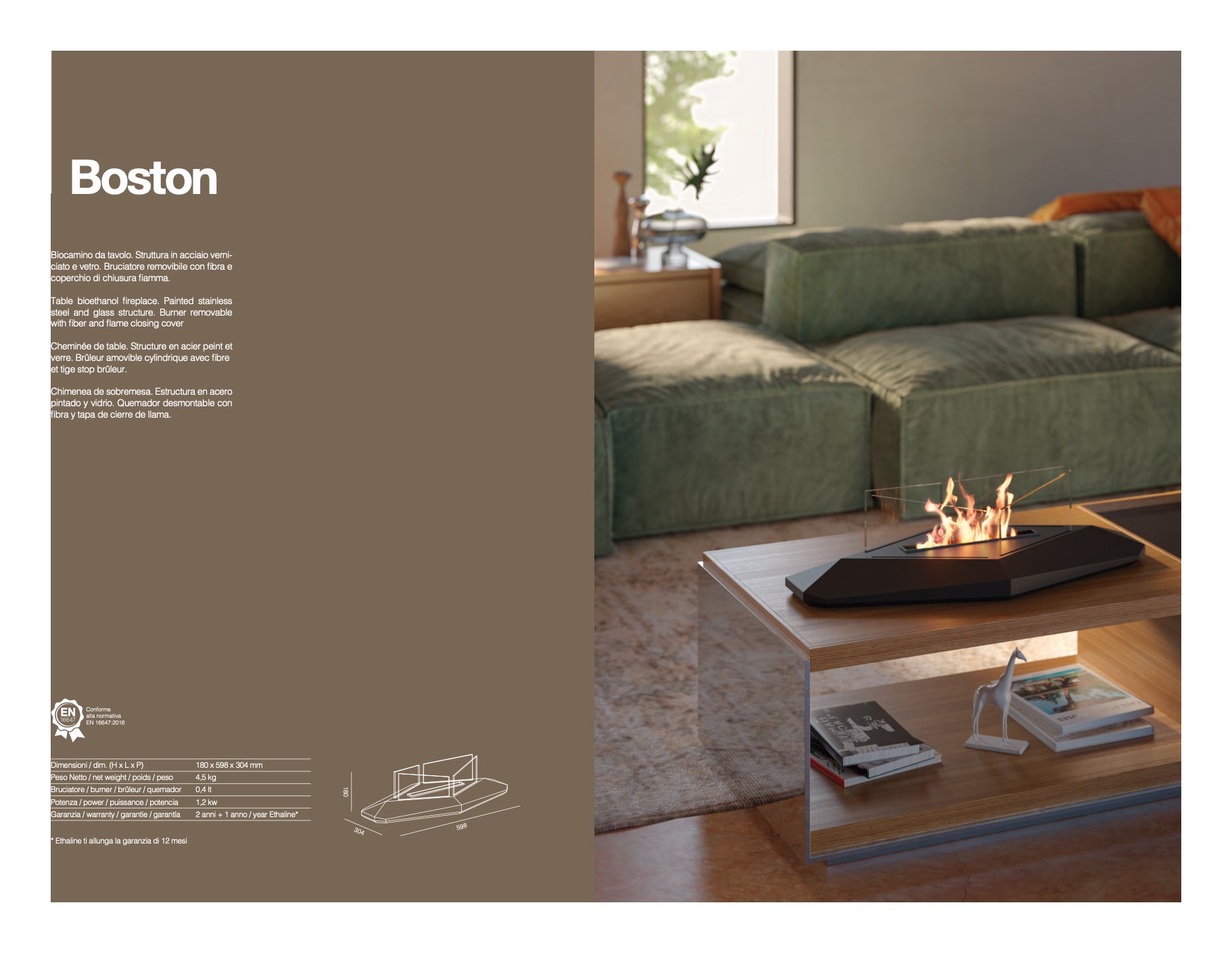 Biocamino 1,5kW BOSTON Da Tavolo Black