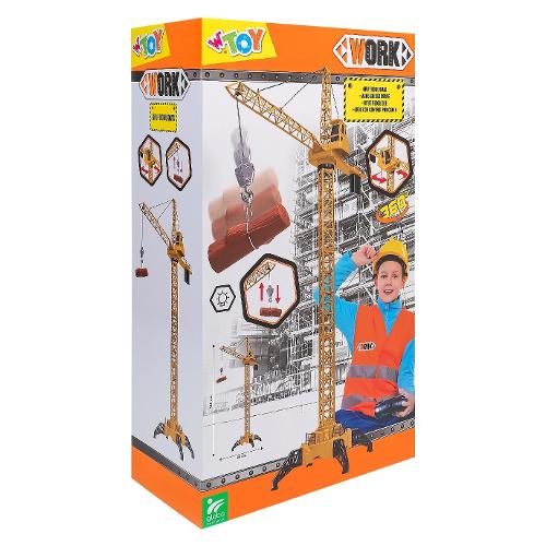 Piccoli costruttori crescono e si divertono con questa fantastica e gigantesca gru filoguidata alta 128 cm! Realizzata nei minimi dettagli, riproduce perfettamente i grandi macchinari per le costruzioni che i bimbi amano osservare nei cantieri. Grazie al telecomando sarà possibile muovere la gru in tutte le direzioni, rotazione a 360°, e agganciare il materiale da cantiere necessario per procedere con le costruzioni. Resistente e facile da assemblare. Funziona con telecomando filoguidate a batterie: 4X 1,5 AA. Dimensioni: L 94 x P 94 x A 128 cm.