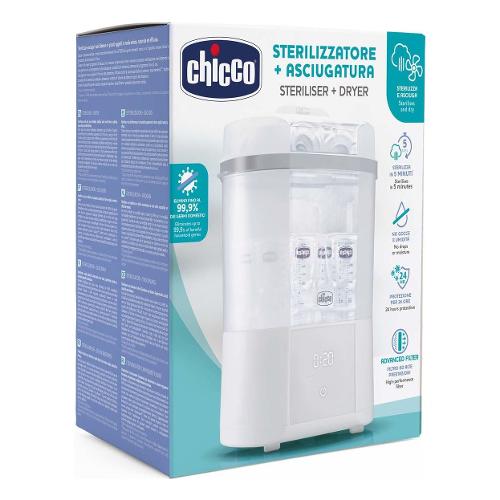 Sterilizza e asciuga i tuoi biberon e piccoli oggetti in modo rapido, naturale ed efficace. Utilizza il vapore per la sterilizzazione naturale, eliminando fino al 99,9% dei germi nocivi presenti in casa; protezione garantita per 24 ore purché il coperchio rimanga chiuso. Dotato di 4 diversi programmi, sia per la versione a pieno carico che per quella a carico parziale: sterilizzazione, sterilizzazione e asciugatura in un unico programma, sola asciugatura e possibilità di posticipare l'inizio del programma fino a 2 ore. Asciugatura sicura grazie a un filtro ad alte prestazioni che intrappola efficacemente piccole particelle di polvere e inquinamento**. Inoltre, elimina la condensa e l'umidità presente nel biberon dopo la sterilizzazione. L'avviso di decalcificazione ricorda di pulire e decalcificare l'apparecchio dopo alcuni cicli.