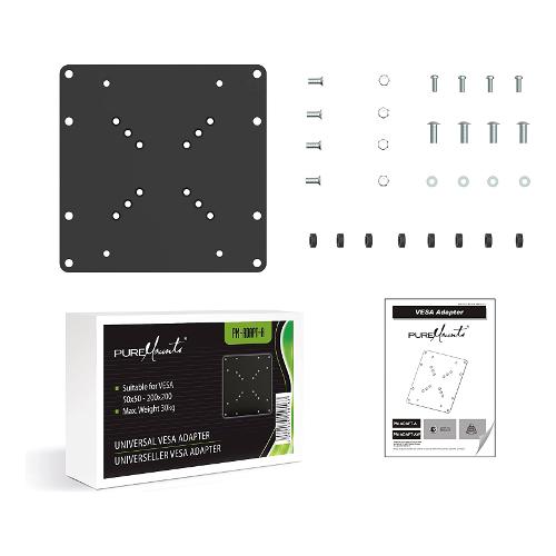 Adattatore universale VESA per il collegamento ottimale del televisore a qualsiasi supporto a parete universale. Gli adattatori VESA PureMounts mirano a rendere i supporti universali a parete compatibili con tutte le dimensioni VESA. VESA da 50x50 a 200x200