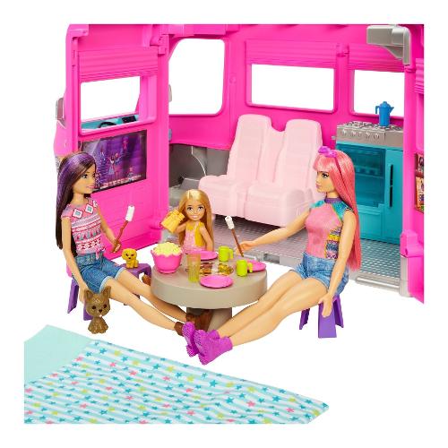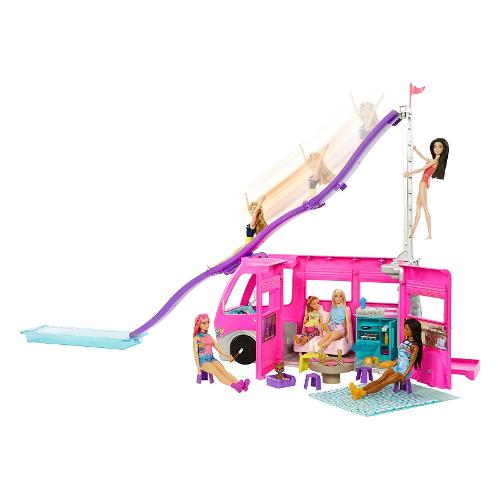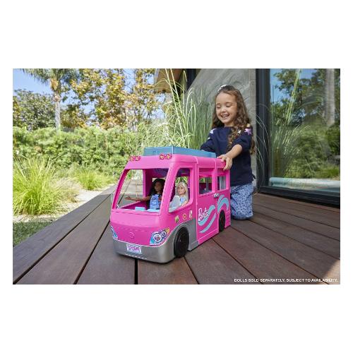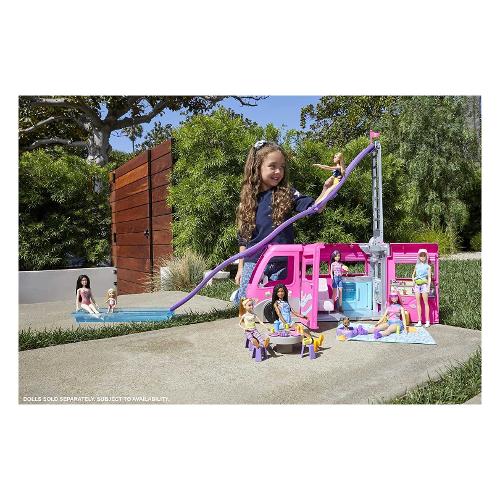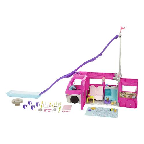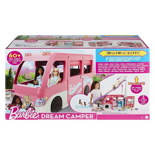 Il camper dei sogni barbie ispira infinite avventure all'aria aperta con sette fantastiche aree gioco, uno scivolo, una piscina e più di 60 pezzi per dare vita a tutte le tue storie in campeggio! Apri il camper e scopri tantissimo spazio per giocare e uno scivolo allungabile fino a 76 cm. Riempi d'acqua la piscina e fai scendere le bambole dallo scivolo per un bel tuffo! Con incredibili trasformazioni e così tanti accessori, il camper dei sogni barbie segue i bambini ovunque li porti la loro immaginazione. I bambini possono collezionare altre bambole e giocattoli barbie e fare il pieno di divertimento in camper