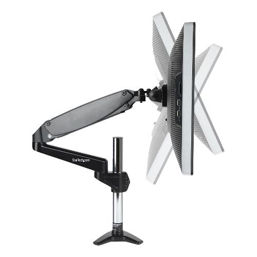 Questo supporto per monitor da scrivania permette di montare e sollevare un monitor con una dimensione massima dello schermo di 32" (16:9) o 49" (32:9) per monitor Ultrawide. La sua solida struttura in acciaio permette a questo braccio per monitor di supportare fino a 8kg con due opzioni di montaggio (Morsetto a C o vite passante con sottopiastra) per fissare saldamente il monitor alla scrivania.