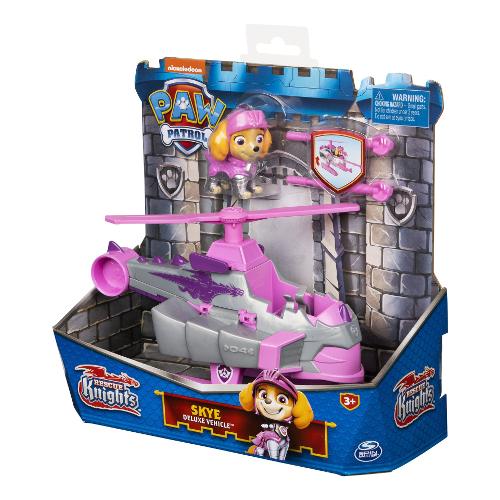 Collabora con Marshall per emozionanti missioni con i suoi cavalieri PAW Patrol Rescue trasformando il veicolo Deluxe. Il veicolo di Marshall presenta dettagli e stile ispirati al drago e un'emozionante trasformazione dello strumento di salvataggio. Orientato nella sua armatura Rescue Knights, Marshall (action figure da collezione inclusa) è pronto a salvare la giornata a Barkingburg. Quando un amico drago è nei guai, metti Marshall al suo posto e vola in soccorso. Spingere verso il basso sull'elica per innestare le ali del suo veicolo e attivare i suoi lanciarproiettili. Caricare i proiettili (due inclusi) e premere il pulsante per avviare. Esplora la tua immaginazione per creare fantastici salvataggi medievali, proprio come quelli del programma televisivo di successo.