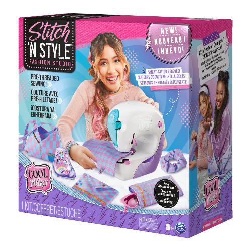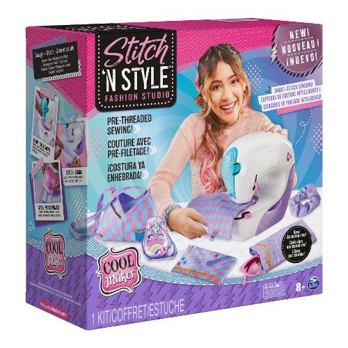 Diventa una stilista e cuci progetti e accessori alla moda con cool maker stitch ‘n style fashion studio. Include una macchina da cucire con filo pre-inserito nella cartuccia (non è necessario inserire il filo) e sensori per la cucitura intelligente del tessuto, in grado di farti cucire nel punto giusto, oltre a un grande foglio di tessuto prestampato fantasia, stampe ad acqua decorative e altro ancora. Con questo kit per il cucito per bambini sarà davvero semplice imparare a cucire. Ritaglia i modelli prestampati sul tessuto, poi cuci e decora sei adorabili accessori: un astuccio per occhiali da sole, un marsupio, un elastico per capelli, un cerchietto, una borsetta e un peluche. Stitch ‘n style fashion studio è utilizzabile anche con la maggior parte dei tessuti, per realizzare altre creazioni sorprendenti. I sensori per la cucitura intelligente la rendono un'ottima macchina da cucire anche per i principianti. Piega i bordi del tessuto e utilizza le clip per mantenerlo in posizione, quindi guida il tessuto verso l'ago. La macchina inizia automaticamente a cucire e si ferma prima di raggiungere il bordo del tessuto. Continua a cucire per completare il tuo progetto, quindi personalizzalo con le stampe ad acqua. Scegli una stampa, bagna lo stampo e tamponalo sul tessuto. Posiziona la stampa scelta sul tessuto inumidito e tampona nuovamente con lo stampo per farla aderire. Una volta finito, riponi tutto nel cassetto portaoggetti per giocare la prossima volta.