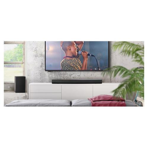 Elegante soundbar dotata di subwoofer wireless per un'esperienza acustica impareggiabile.