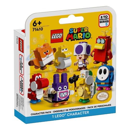 Il Pack Personaggi - Serie 5 (71410) collezionabile permette ai bambini di portare le loro avventure con LEGO® Super Mario™ a un livello superiore. Ogni Pack contiene un personaggio costruibile a sorpresa dotato di action tag e una piccola costruzione da utilizzare come espositore o da aggiungere a un livello per potenziare il gioco. I personaggi LEGO Super Mario da collezionare sono 8: Ruboniglio, un Toad viola, Martelkoopa, Pterotondo, Magikoopa, Baby Yoshi, Yoshi rosso e Tipo Timido blu, ognuno progettato per essere utilizzato con un set Starter Pack (71360, 71387 o 71403), necessario per il gioco interattivo.