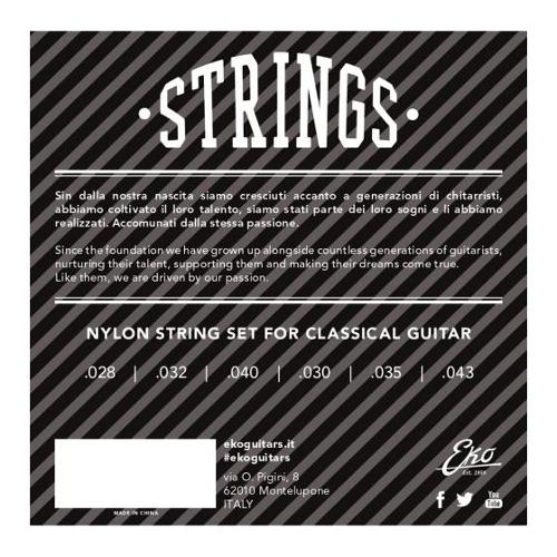 Muta di corde in nylon per chitarra classica. Sono caratterizzate da un buon equilibrio timbrico, morbide al tatto e con una ampia gamma dinamica. Scalatura: 028, 032, 040, 030, 035, 043