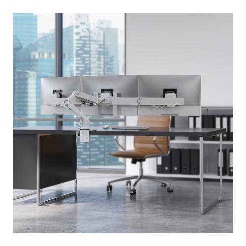 Il Supporto triplo HX consente di aggiornare un braccio HX in modo che sostenga tre monitor; include inoltre una maniglia per agevolare il posizionamento. È l’accessorio perfetto per espandere la visuale attraverso più schermi, e sfrutta al tempo stesso le capacità di adattamento del braccio HX.