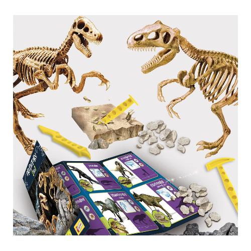 Due blocchi da scavare per portare alla luce gli scheletri dei due più famosi predatori della preistoria: il Tyrannosaurus Rex e il Velociraptor. Costruisci i loro scheletri e ottieni riproduzioni in scala di ottima qualità.