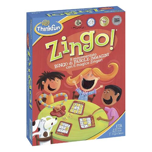 ZINGO! è un gioco di abbinamenti interattivo e coinvolgente. Regala un pizzico di emozione al classico gioco della tombola e aiuta il bambino ad imparare divertendosi. Fai scorrere lo ZINGO! Zinger e fai apparire, come per magia, nuove tessere! Il giocatore che per primo riesce a coprire tutti gli spazi sulla propria scheda ZINGO!, vince! Le tessere e le schede riportano sia le immagini sia i nomi corrispondenti e ciò rende questo gioco uno strumento utile per i bambini in età prescolare.