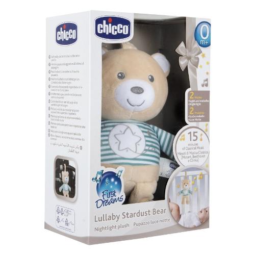 Orsetto polvere di stelle è un morbido peluche che tiene compagnia al tuo bambino durante il momento della nanna. Il peluche è dotato di una luce notte soffusa situata sul suo pancino e può riprodurre fino a 15 minuti di melodie classiche per rilassare il bimbo. Inoltre, si può utilizzare in due diverse modalità: musica e luce o soltanto melodie. L'orsetto possiede anche un laccetto per poter essere fissato direttamente sul lettino o sul passeggino ed è lavabile in lavatrice. Adatto dagli 0 mesi in poi