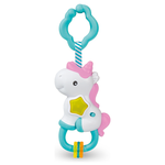 Un magico unicorno per intrattenere il bambino con luci e musiche! Con un pulsante luminoso a forma di stella e ciondoli colorati per creare simpatici effetti sonori. Il pratico anello è pensato per agganciare il sonaglino alla culla o al passeggino e portarlo sempre con sé.