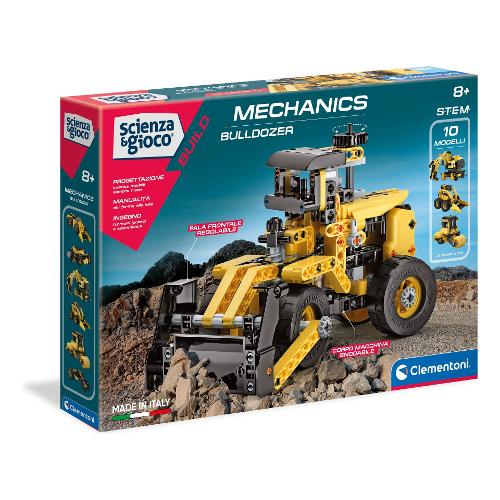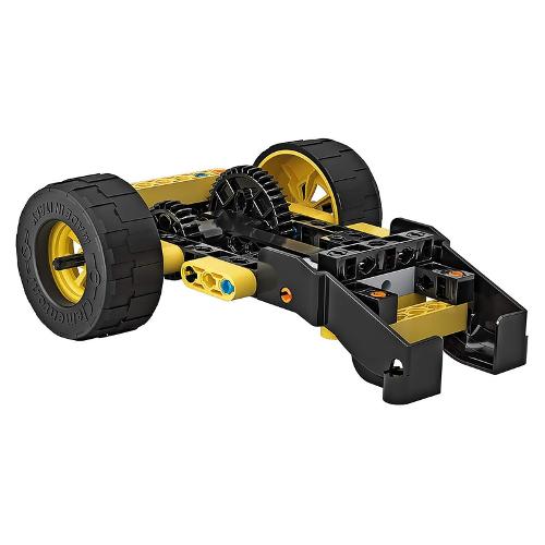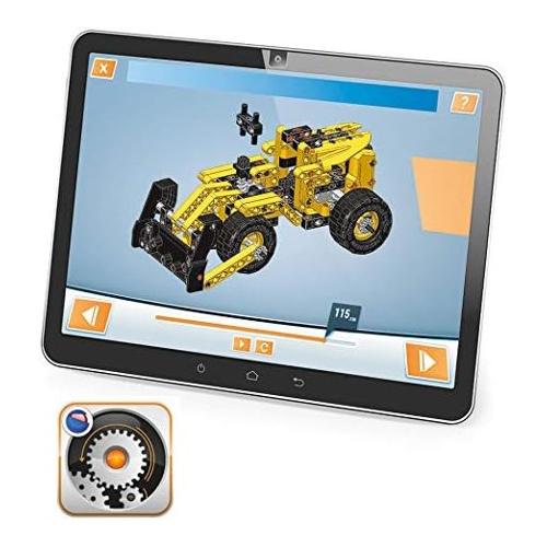 Un set con il quale costruire una ruspa compattatrice e altri 9 modelli di macchine da cantiere! Con oltre 200 componenti tra i quali: ruote dentate piatte e coniche, cremagliera, differenziale, vite senza fine, gomme tacchettate, barre e pannelli. La benna della ruspa si solleva grazie al meccanismo con vite senza fine e la macchina si muove davvero ruotando lo sterzo.