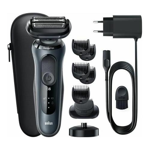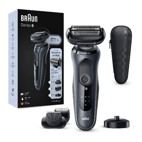 Il rasoio elettrico da uomo Braun Series 6 è dotato di una testina di rasatura girevole SensoFlex dermatologicamente testata e di lame SensoFoil che consentono la regolazione della pressione e garantiscono una rasatura precisa ma delicata. La batteria agli ioni di litio garantisce un'autonomia fino a 3 settimane e una ricarica rapida di 5 minuti, sufficienti per un'applicazione.