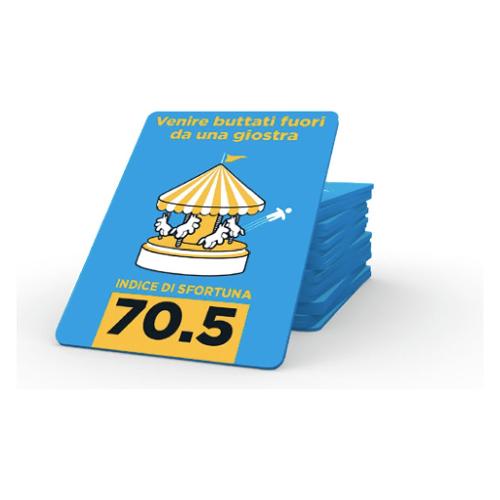 Riucirai ad essere il migliore a classificare eventi spiacevoli da «mhh» al peggiore in assoluto? Il primo giocatore che allinea 10 carte correttamente nel suo SENTIERO DELLA SFORTUNA ha vinto! La confezione contiene: 200 carte con situazioni orribili, ognuna raffigurante un evento spiacevole che è accaduto O potrebbe accadere.
