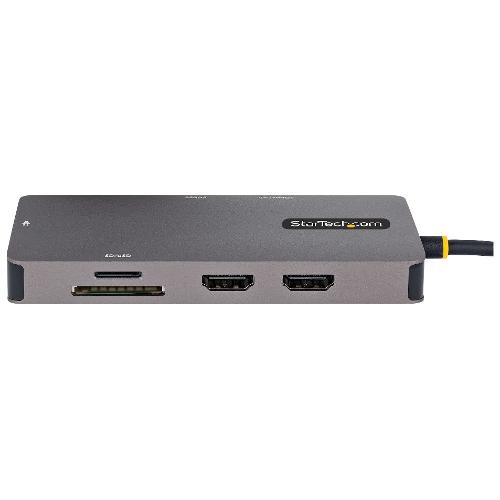 Questo adattatore USB Type-C multiporta con DP 1.4 Alternative Mode, DSC e MST, supporta video dual-HDMI (HDR) con risoluzioni fino a 4K 60Hz non compresso. Il mini dock da viaggio permette di trasformare i dispositivi Dell XPS, Lenovo X1 Carbon, HP Elite/ProBook o altri laptop USB-C in una workstation, ovunque ci si trovi.