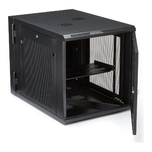 Questo Armadio Rack consente di installare a parete Server o Dispositivi di Rete e di accedervi facilmente grazie alla sua struttura a cerniera.