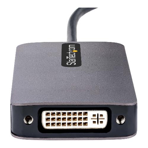 Questo adattatore video USB-C multiporta offre una soluzione durevole e portatile per collegare un dispositivo USB Type-C a un display HDMI, DVI o VGA.
